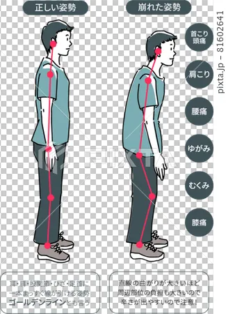 ・胴体が重力に対して崩れている